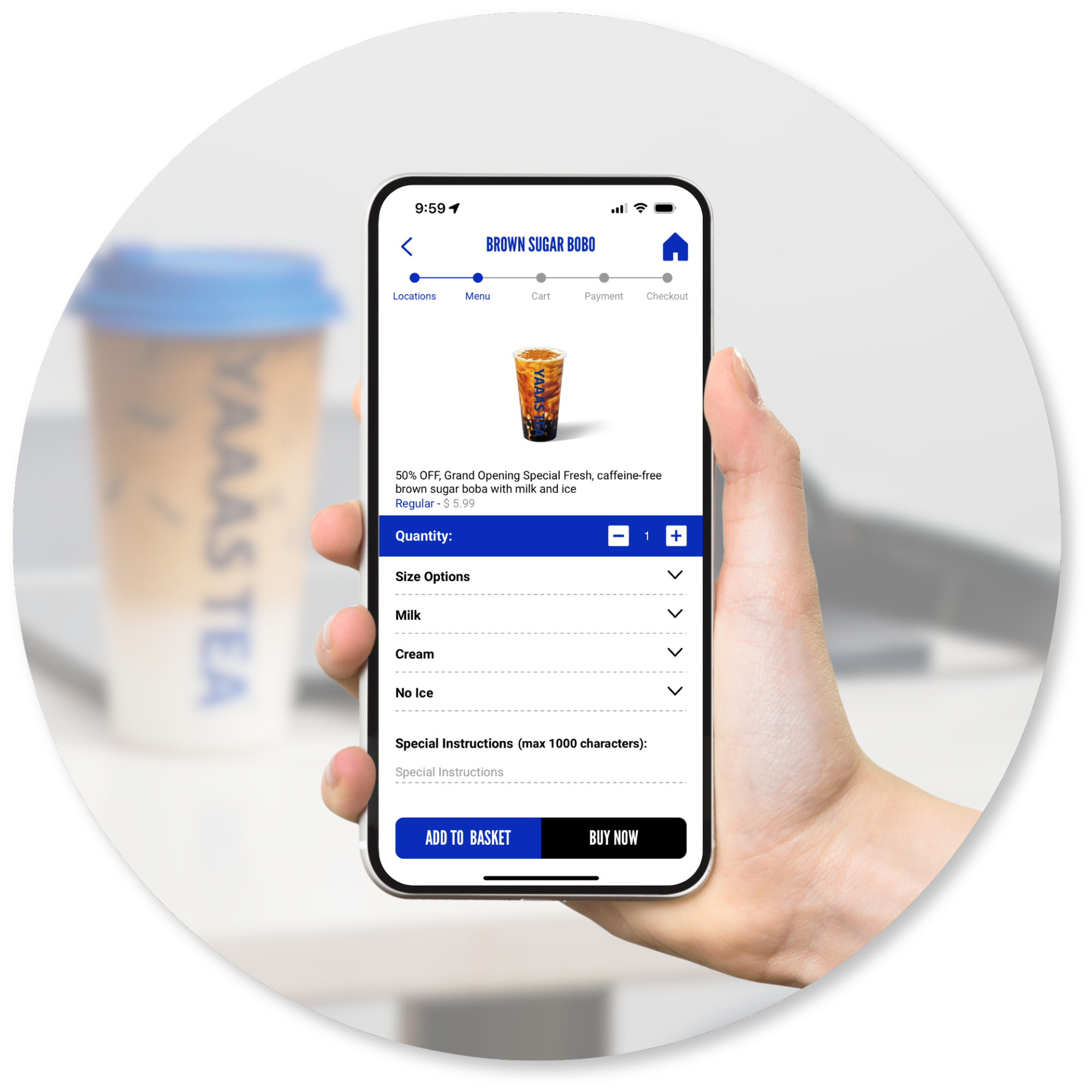Location at Your Fingertips: Instantly find the nearest YAAAS TEA location using your mobile device's GPS.